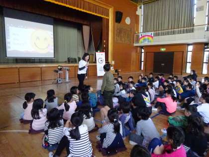子どもたちは、英語で話される内容を聞き、少しでもわかることがあると「ぼく、それ知っているよ」「わかった!」と元気に応えていました。外国の文化に触れ、国際的な感覚を低学年のうちからシャワーのようにあびることは、子どもたちにとってとても大きな学びになります。