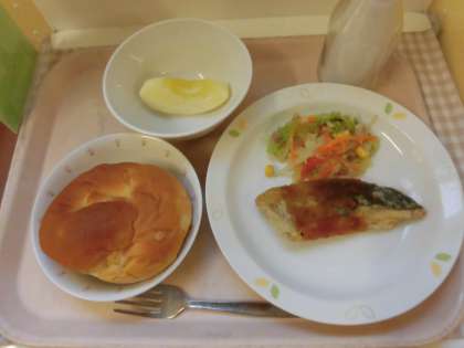 ☆今日の給食は「シイラのバーベキューソース」です。シイラは高たんぱく質、低脂肪の魚でクセが少なく食べやすい白身魚です。今日は、みんなが食べやすいように揚げたシイラに甘ずっぱいバーベキュソースをかけて食べました。
