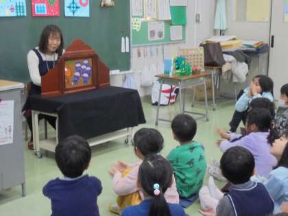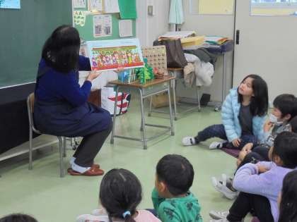 本日、粕谷図書館の職員の方によるお話会が開かれました。エチオピアの昔話、冬の季節にちなんだ絵本の読み聞かせ、子どもたちも一緒にできる指のおはなし等々、あっという間の45分間となりました。是非、お子さんに今日のおはなし会の様子について尋ねていただけたらと思います。また、お時間があれば図書館にも足を運んでみてはいかがでしょうか。