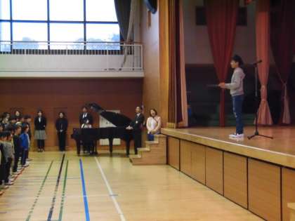 最後に音楽委員会の伴奏で校歌を歌いました。