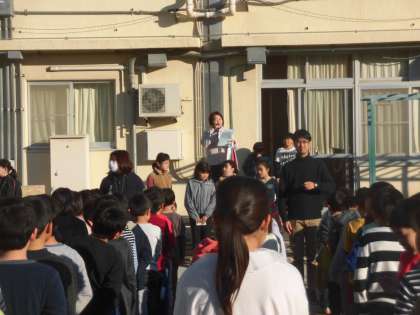 また、その他にも烏山プラネッツ(ミニバスケットボールチーム)の表彰、2名の転入生の紹介、今日から始まる縄跳び旬間についてのお話がありました。