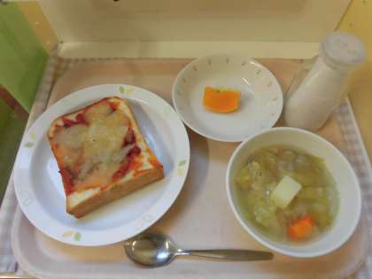 ☆今日の果物は『夢オレンジ』です。夢オレンジは「南香みかん」と「天草オレンジ」をかけ合わせてできた果物で、愛媛県で作られました。夢オレンジは、皮が薄くプルプルの果肉で、みかんの甘さとオレンジの香りをあわせ持ち、とても甘いのが特徴です。給食室では約100個のオレンジを切りました。