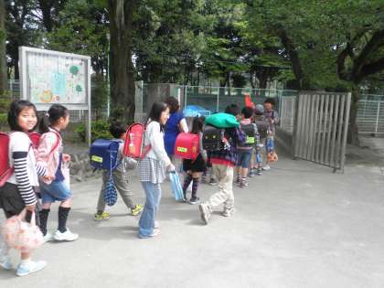 高学年の子は低学年の子の手をしっかりつないで帰りました。
