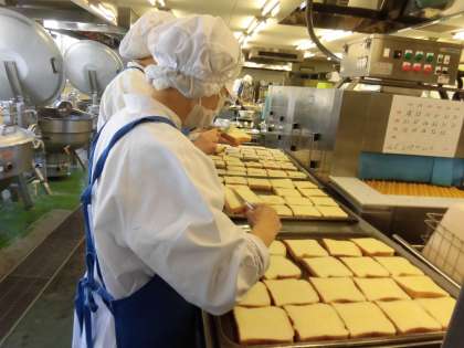 ☆今日は子ども達に人気の「はちみつレモントースト」です。レモンには風邪予防に効果のあるビタミンCが多く含まれています。給食室では、はちみつ・バター・レモン果汁をあわせたものを1枚1枚パンに塗りオーブンで焼きました。爽やかで酸味が美味しいトーストをみんなで食べました。