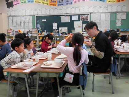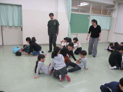 1年生は、日本語の学習で世田谷パブリックシアターの方にきていただきました。多目的室を使用して、いろいろになりきった学習も3回目でした。お友達と協力をして「長靴」「目玉焼き」などになりきろうと一生懸命体を動かしたり、友達と相談したりしました。最後となった今回は、1つのお話を読んでもらい、グループごとに各場面を担当し、お話しに出て来る登場人物や、乗り物になりきり、お話を完成させました。学習を終え、教室での振り返りでは、、「たのしかった!」「アドバイスをしてもらって工夫をした!」「また来年もやりたい!」とありました。給食も一緒に食べていただき、どの時間も楽しく元気よく過ごすことができました。また来年来てくれるか楽しみですね!