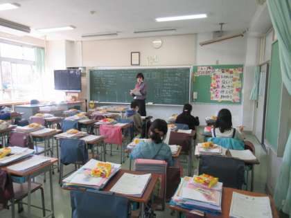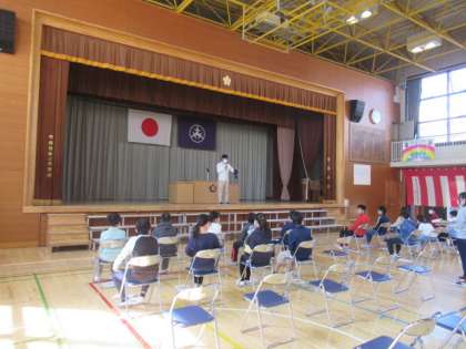 今日は、つくし学級と4年生から6年生まで分散登校でした。久々に会った喜びをかみしめ、課題を提出したり荷物や手紙等を持って帰りました。6年生は、学級での指導が終わった体育館に寄って、卒業式の授与の練習をしました。初めての練習で戸惑いながらもできました。
