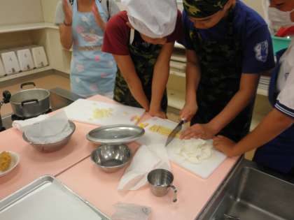 今朝は、6年1組が調理実習をしていました。メニューはご飯とおみそ汁です。