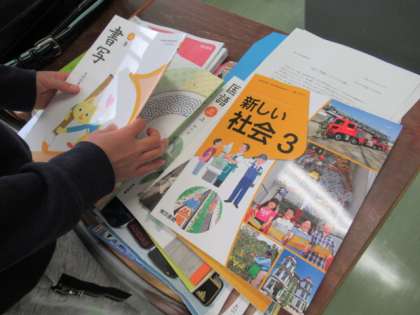 今日は3年生が教科書を取りに来る日でした。あいにく雨の日で大変だったと思いますが、子どもたちは元気にやってきました。3年生の先生は、井上先生、須賀先生、富田先生です。富田先生は今年来た先生でしたので、子どもたちは初めて会いました。富田先生は烏山小学校の子どもたちは、「行儀がいいですね。」と言っていました。