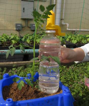 おいしいミニトマトができるように、一生懸命お世話しましょう。