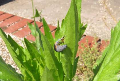 最後に、クイズです。写真右にうつっているのは何の虫でしょうか。2年生の花壇にいました。