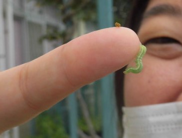 1枚目は先生がモンシロチョウのよう虫と仲よくしているところです。かわいいです。