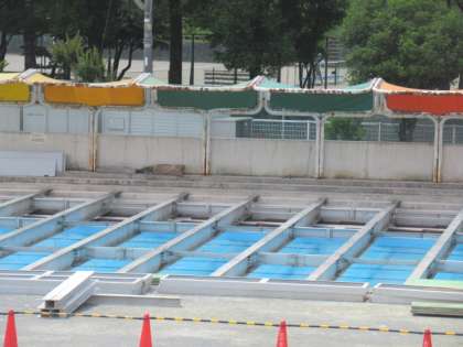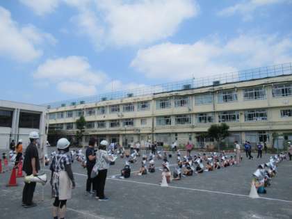 プールの水を入れ替えて、プールにふたをする作業が、今日行われました。今年は水泳の授業がないので、来年までふたをします。校庭が広く使えるようになりました。また、10時25分に爆破予告を受けて、校庭に避難しました。その前に、校内を点検し、安全を確かめました。無事に終えました。