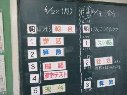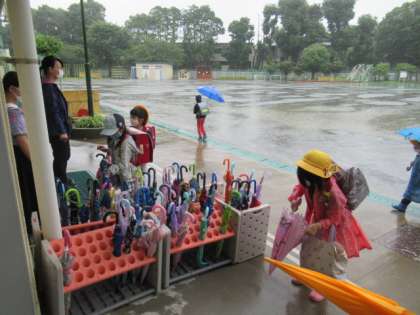 今日は、初めての雨の中での登校でした。1年生は、初めて傘立てに傘をしまい、校舎に入りました。分散登校も今日で終わり。来週からやっとクラス全員が集まります。子どもたちは、クラスの友達、全員が来ることを楽しみにして下校していきました。そして、給食も始まり、午後までの授業になります。教室も準備OKです。