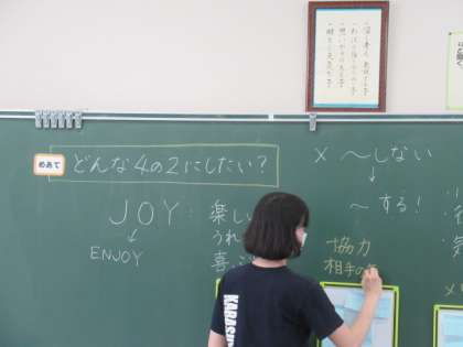 通常の授業が始まって1週目が終わります。子どもたちは、学校が楽しいと言って帰っていきます。再会できてよかったです。でも今週は疲れています。十分休ませてください。今週、各クラスでは、クラスの目標を決めています。「友達との違いを認め合い、よりよい学級をつくろうとする」の目指す目標となるものです。みんな考え合って作っていました。