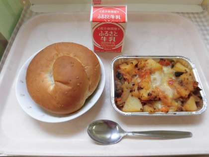 ☆今日は「なすのポテトグラタン」です。子ども達が食べやすいように、なすを油で揚げてケチャップで味付けをしました。なすは「味がしない」「食感が嫌だ」という声もききますが、なすはとても栄養価が高い野菜です。なすの調理法によってですが「グアニル酸』という旨味成分がたくさん含まれているので、ご家庭でも旬のなすを食べるようにおすすめしています。