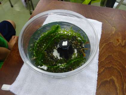メダカを飼育し、卵を孵化させて子メダカの誕生を待っています。