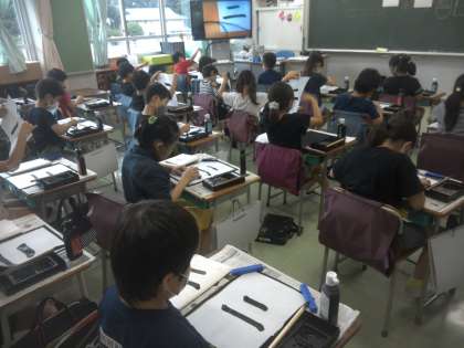 3年生の子どもたちは、初めての毛筆に取り組みました。