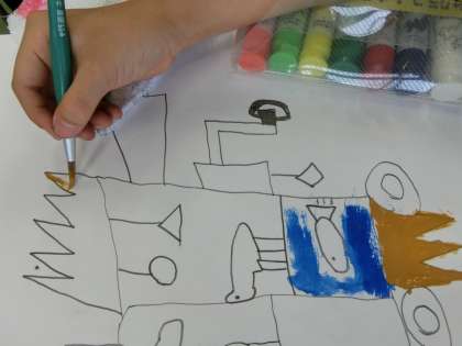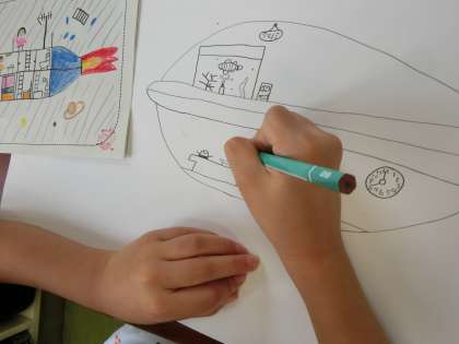 「宇宙まで行けるかな−?」「外国にいってみたいなー」など、みんな楽しみながら制作中です。