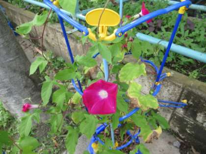 7/21 校庭のアサガオ、ミニトマト、キュウリ