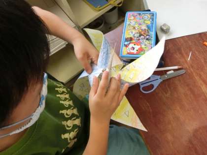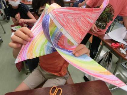 くるくる回した模様の見え方や色の変化を楽しみながら、友だちと一緒に遊ぶことができました。動く工作は人気があり、教室中に歓声があがっていました。