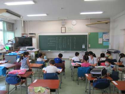 夏休みの補習2日目を迎えました。昨日から来ている子はすっかり学習の進め方に慣れて、静かに集中して取り組む様子がどの教室でも見られました。
