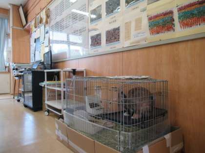学校の緑のカーテンはすくすく伸び、観察池は夏の生き物のがすみ、校長室にはうさぎのムギが夏を快適に過ごしています。コロナ禍の夏です。健康に過ごしてください。