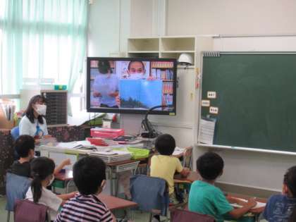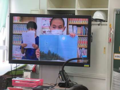 読書旬間の一環として、図書委員がテレビ放送で読み聞かせをしました。全校のみんなが読書好きになれるよう図書委員はがんばりました。テレビ放送で児童集会を行うのも慣れてきました。