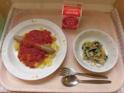 ☆今日はオリパラ給食で、レソトの料理「ボーアウォースプレート」です。レソトは南アフリカ共和国に囲まれた、小さな王国です。レソト王国での主食は、トウモロコシと小麦そして肉です。特に肉類は、ラムの他 鹿やダチョウ、インパラの肉が食べられます。レソト王国では「ボーアウォース」といってスパイスやハーブを練りこんだ、粗びき感が美味しいソーセージもあります。給食では、なかなか再現するのが難しく、ボイルしたソーセージにピリ辛ソースをかけて、みんなでいただきました。