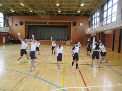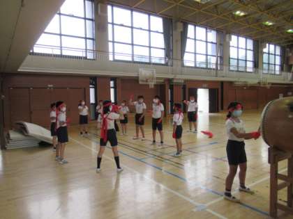 応援団の練習が始まっています。今日は、休み時間に体育館で練習していました。赤と白も応援団長の下、がんばって練習していました。見ていて力が入ってきます。