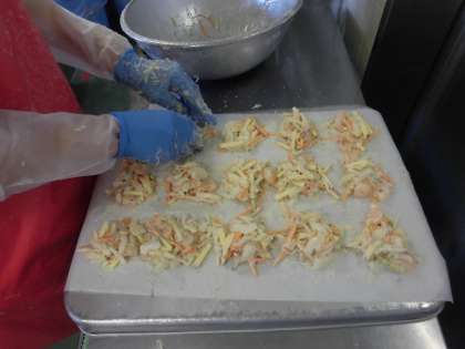 ☆今日は、明日の運動会にそなえて食べやすい「お茶漬け」にしました。優しい塩味のごはんに だし汁をかけて、サラサラと食べられる献立です。「かきあげ」は、だし汁につけて食べてもおいしいです。今日も給食室の大釜でたくさんの「かきあげ」を揚げてみんなで食べました。