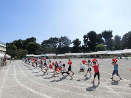 明日の運動会へ向け、準備万端の1,2,3年生でした。