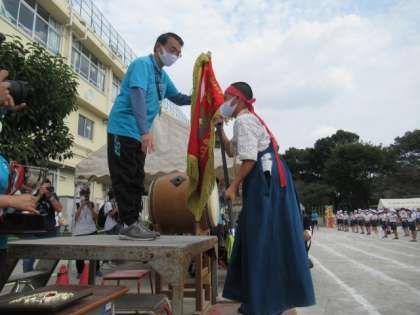 秋晴れの下、運動会ができました。コロナ禍の運動会でしたが、「いい汗流そう みんな笑顔 みんな友達 One Team」のスローガンが達成できました。赤組が優勝しました。保護者・地域の皆様、テントの提供、準備片付け、ありがとうございました。