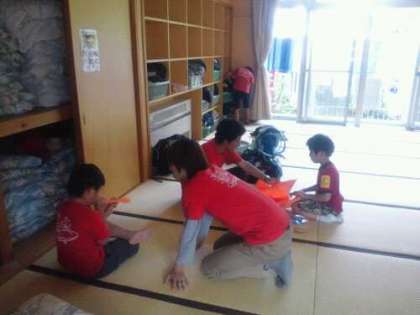 開園式の後、牛乳のおやつを飲んでから、お風呂に入り、