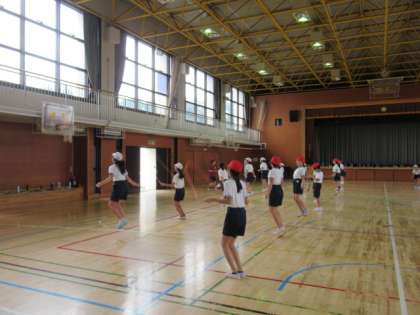 今日から、24日までの2週間、「縄跳び旬間」が始まりました。中休みの時間に「ジャンピングタイム」の時間を設けて、校庭、体育館、屋上に分かれて、縄跳びに挑戦しています。また、体育の時間に行っています。今日、校庭は起震車が来ていたのでできませんでしたが、他の場所ではがんばってやっていました。