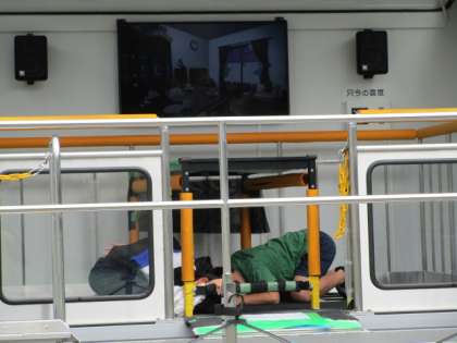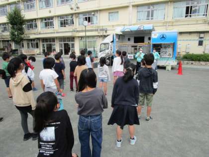 本日4年生は、世田谷区の地震体験車「なまず号」をお借りして、震度7の揺れを体験しました。
