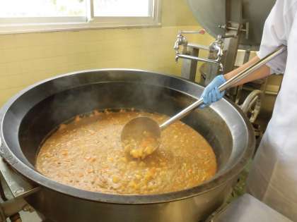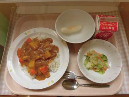 ☆今日の給食は「きのこのカレーライス」です。今が旬のしめじもカレーの中に入れました。子ども達が苦手なしめじもカレーに入ると美味しく食べることができます。そして、果物の梨は長野県から取り寄せました。品種は南水です。優れた糖度と柔らかい果肉でみずみずしのが特徴です。梨も1つ1つ給食室でカットしました。