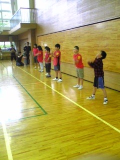 朝の会で、5年生がお手本となってラジオ体操をしました。