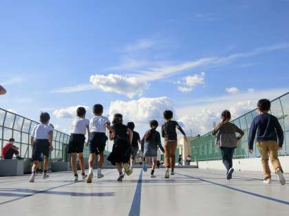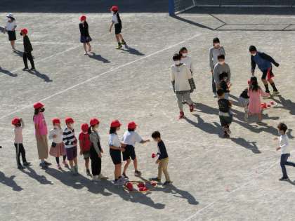 気持ちのよい秋晴れの空の下、屋上や校庭で元気いっぱい遊ぶ児童の姿が見られました。体育館遊びや室内遊びも含め、それぞれの活動場所で密にならない遊びを工夫して楽しむことができていて、とても素晴らしい時間でした。