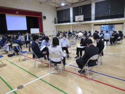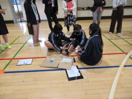 今日、温知学舎上祖師谷中学校で、第3回合同研修会が行われました。今回は、「めあて学習」の分科会の提案で、2年生の保健体育「障害の防止」の授業を行いました。「身近なものを代用し、どのようにすれば応急手当としての固定をすることができるだろう」というめあてで、学習を行いました。生徒は、代用品を使いながら、応急手当の仕方を考えました。その授業を見て、先生たちは協議をしました。