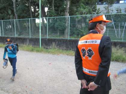 校長先生は地域の方からいただいたあいさつキャンペーンのサンバイザーとベストを身に付けて、みなさんの取り組みを見守っていました。