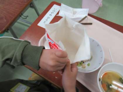 今日に向けて、2週間前から牛乳パックを開く練習を始めたり、エコ給食委員の児童が、牛乳パックリサイクルの動画を作成してくれたりしたことで、スムーズにスタートすることができました。