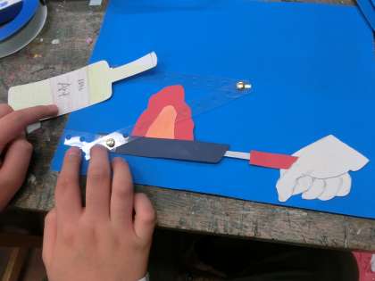 6年生は『動き出すストーリー』の学習をしました。割ピンやストローを使って、動く仕組みを利用したおもちゃづくりに挑戦しました。