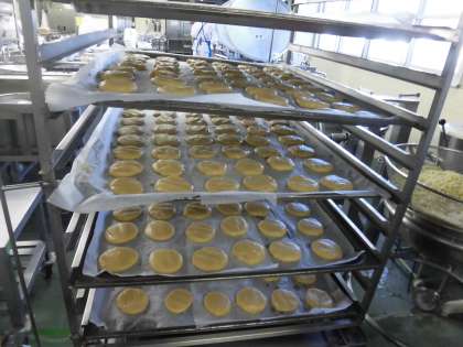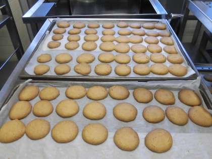 ☆今日のデザートは「ちんすこう」です。沖縄県のお菓子です。ちんすこうは、王侯の貴族しか食べることの出来ない大変貴重で高価なお菓子でした。そのことから庶民にとって珍しいお菓子だったそうです。今日は給食室で、1つ1つ丁寧に「ちんすこう」を作り、オーブンで焼きました。