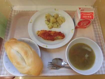 ☆今日のオリパラ給食は「フランス」です。フランス料理はトルコ料理、中華料理、と並ぶ世界三大料理とされ、世界から人気をほこる代表的な西洋料理です。今日の「白身魚のポワレプロヴァンス風」は、フランスのプロヴァンス地方の料理です。ポワレとは、フライパンを使い、適量の油でカリッと焼く調理法です。給食室では、魚の上にかかるトマトソースも、こだわって作りました。そしてバジルポテトも少し大人の味に仕上がりました。