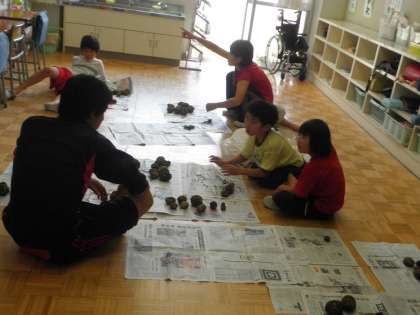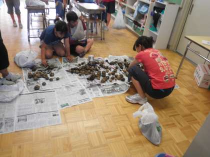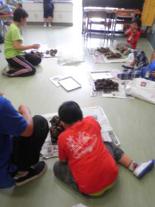 たくさん収穫してきたので、昼休みに、みんなで分け合っていました。