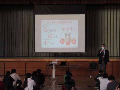 本日の土曜授業日の授業公開のテーマは、「ICTを活用した授業」でした。各クラス、大型モニターは、授業では黒板と同様に常時活用しています。タブレットは、まだ、台数は十分ではないのですが、ICTを効果的に使って授業をよりわかりやすくしています。6年生は、ネットリテラシー講座を行い、情報モラルを学びました。ご参観、ありがとうございました。