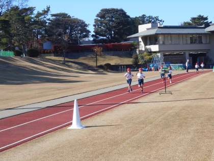 とてもよい天気の中、第一生命グランドで持久走大会を行いました。