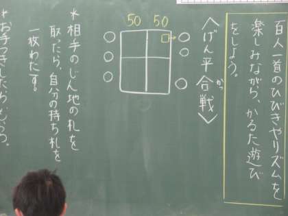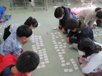 4年生は、「百人一首」の学習です。百人一首のかるたをしながら、自然と和歌を覚えてしまいます。「源平かるた合戦」を初めてやって、楽しんでいました。