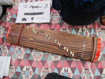 箏とは、2500年も前にできた楽器で、龍に見立てられているそうです。リコーダーやピアノは「ドレミ」の音階で音が表されていますが、調弦された箏は数字で書かれた楽譜を読みながら演奏します。夢中になって音色を楽しんでいました。座り方や、手の置き方、音の出し方をなどを教えてもらい、「さくら さくら」に挑戦しました。
