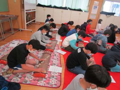 本日、音楽の授業で、箏指導者の増渕喜子先生に、箏の出前授業を行っていただきました。